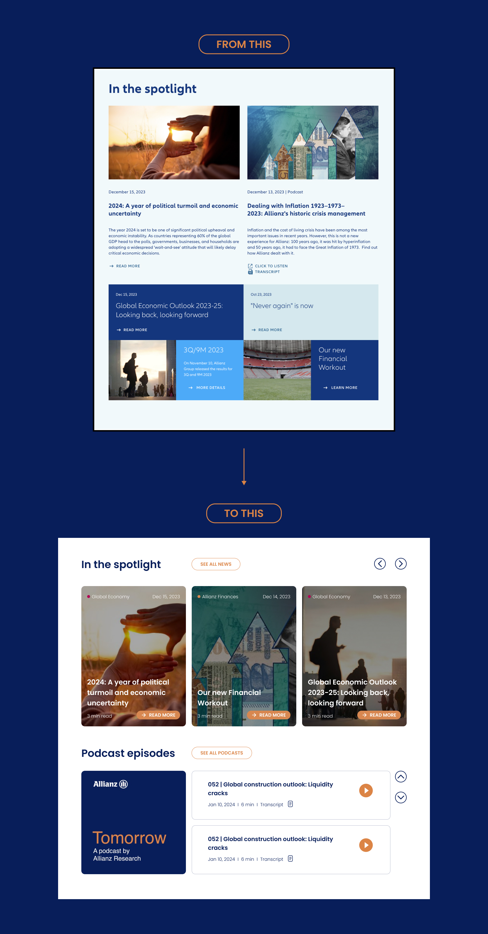 - Summary: Creation of an intuitive digital experience that helps users discover the diverse news in the Newsfeed section of Allianz group.